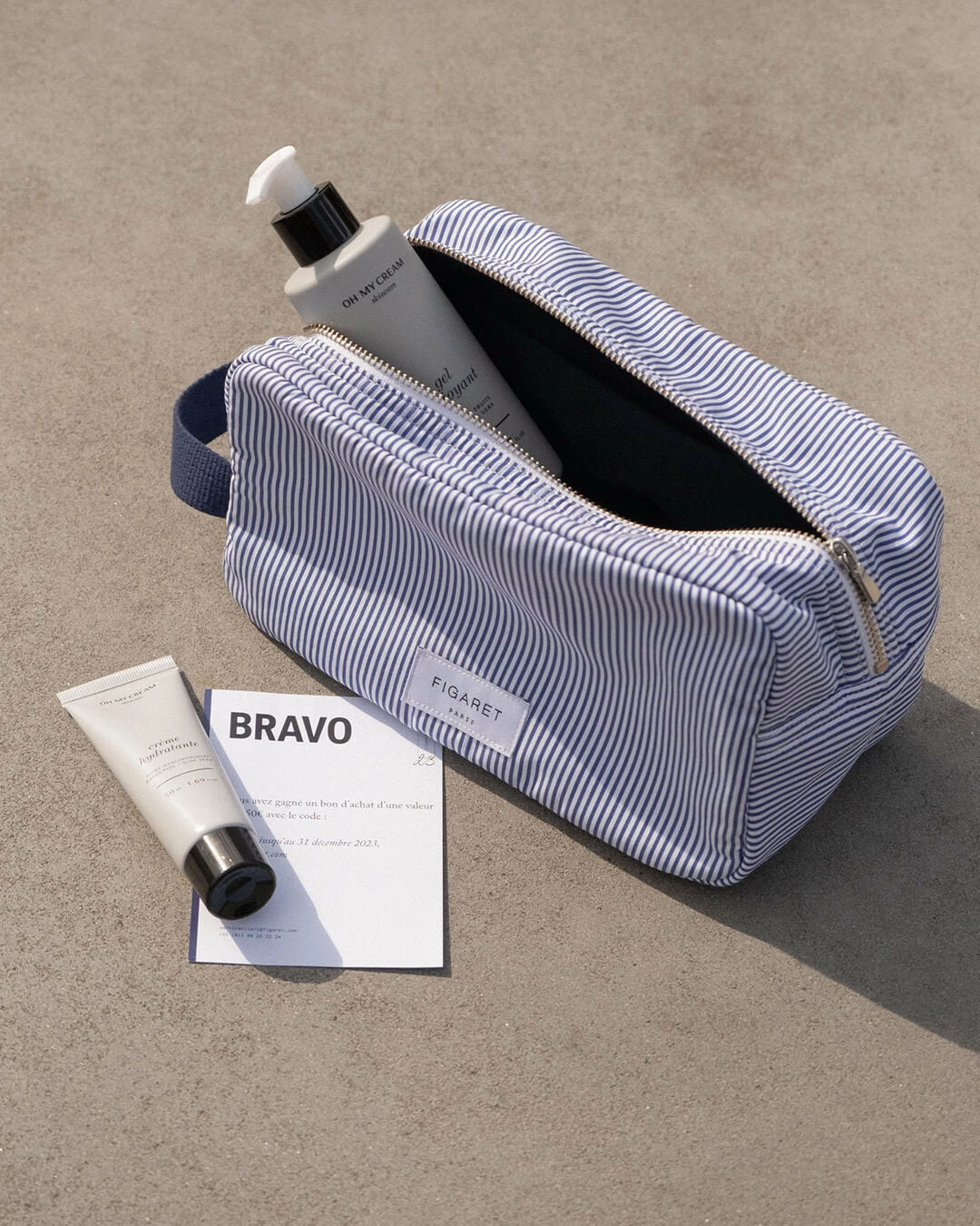 2 tickets d’or de 150€ se sont glissés dans l’une des trousses pour 2 chanceux ! Mais vous trouverez également un bon d’achat de 10€ valables sur le site de Figaret et en boutiques.